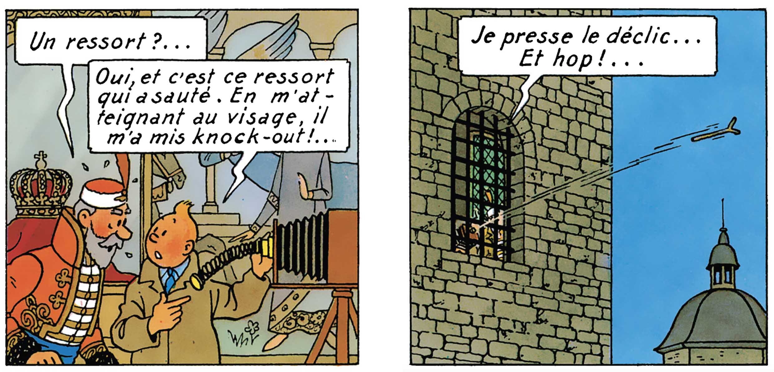 Le coup est d’une simplicité désarmante. Le faux savant, Alfred Halambique, s’introduit dans le château sous l’identité de son frère jumeau, expert en sigillographie. Rien de plus officiel. Le piège se referme quand un photographe, complice, actionne son appareil truqué : un mécanisme à ressort expédie le sceptre par la fenêtre, au-delà des grilles, dans les bras d’un homme posté à l’extérieur. Pas de casse, pas de bruit. Le vol parfait !