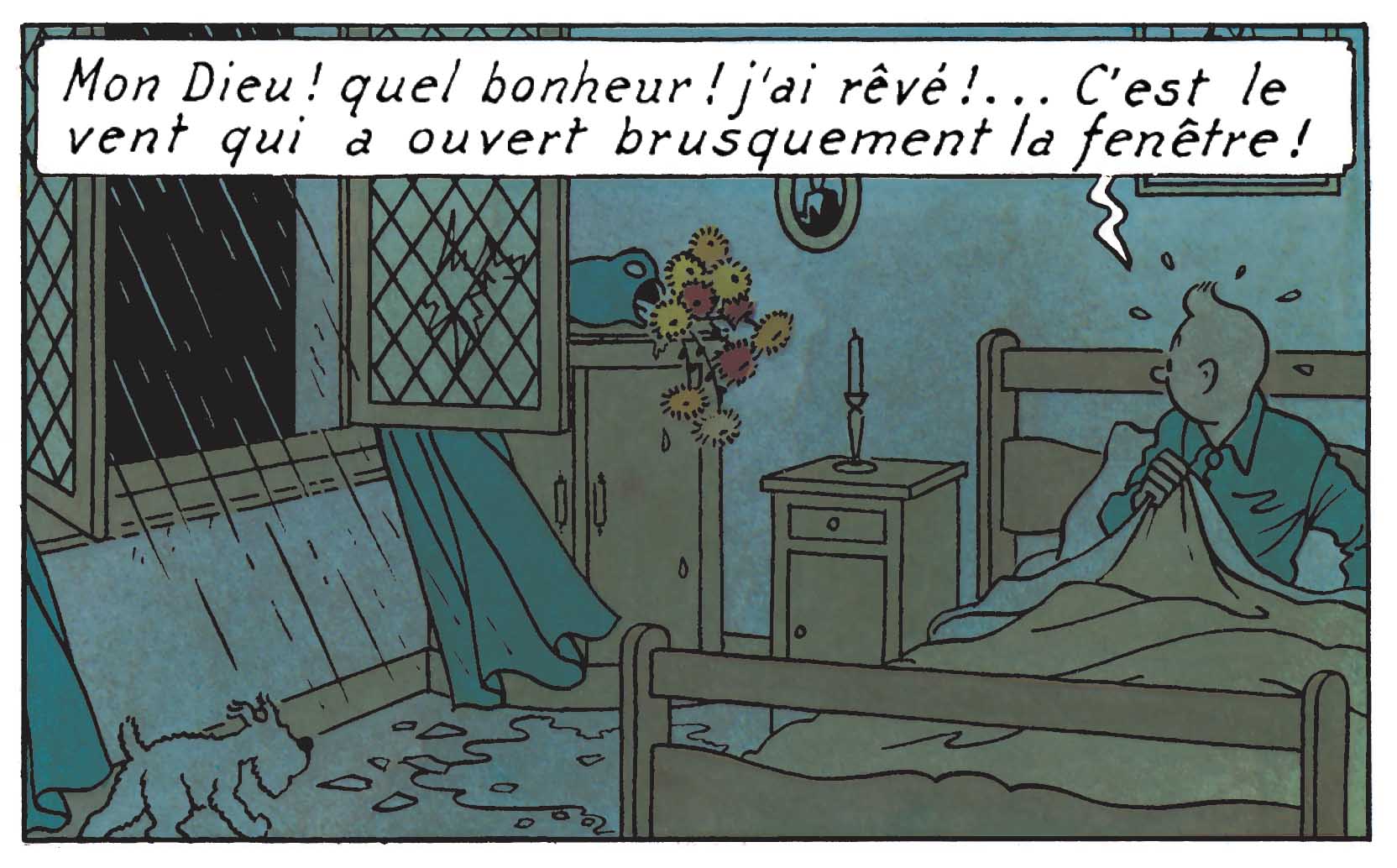 Fugace, certes, mais emblématique, cette présence rare et déterminante fait de Rascar Capac un véritable vecteur du fantastique, comme on ne l’aurait jamais cru dans l’œuvre d’Hergé. Sa furtivité même accroît son emprise symbolique : l’Inca « hante » littéralement l’album. Hergé cultive ainsi l’hésitation du lecteur : rien ne prouve qu’il s’agit d’un simple cauchemar, aucun indice explicite ne dissipe l’ambiguïté entre vision fantasmée et réel. Et même la fenêtre ouverte installe une menace diffuse, immédiatement perceptible par le lecteur.