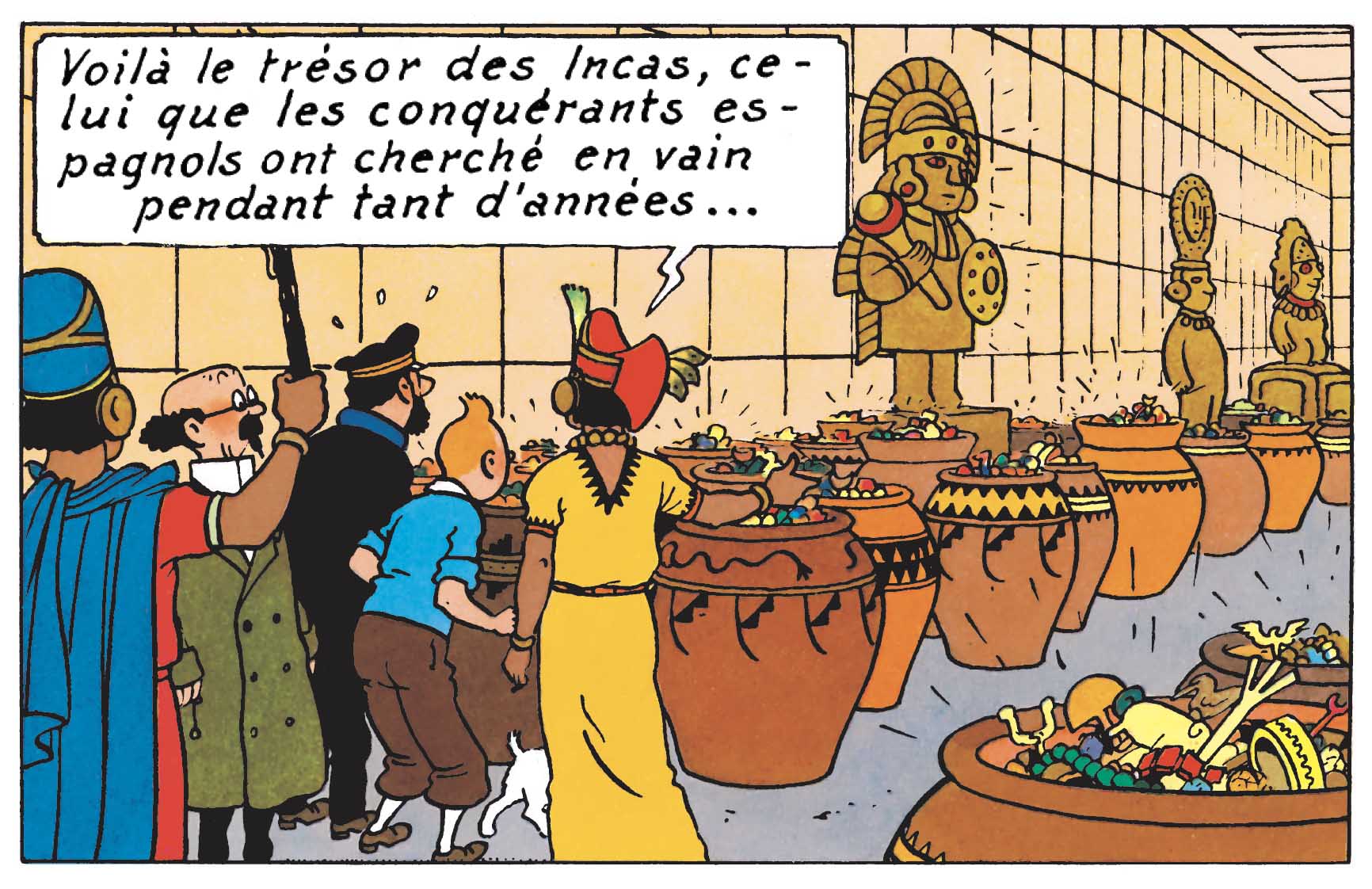 Jusqu’à l’album du Temple du Soleil, on pourrait presque y voir l’écho de l’aventure d’Hiram Bingham qui, en 1911, redécouvre le Machu Picchu au Pérou. Site alors méconnu de l’Occident, et pourvoyeur de mystères encombrés d’or… La sagacité de Tintin en plus.