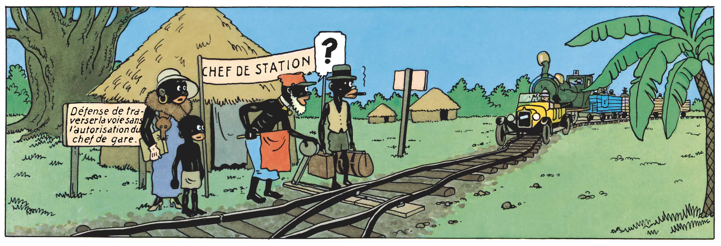 Pas de temps à perdre, cap vers l’Afrique et ses merveilles naturelles. Dans Tintin au Congo, l’aventure commence très officiellement sur le quai de la gare du Nord à Bruxelles. Tintin prend le train vers Ostende, avant d’embarquer sur un paquebot de la Compagnie maritime belge à destination de l’Afrique. Sur place, il roule à bord d’une Ford T de location, surnommée la « Tin Lizzie », directement inspirée des catalogues automobiles de l’époque. Mais la route croise vite l’unique grande ligne ferroviaire coloniale, le chemin de fer Matadi–Léopoldville, long de 366 km. Voie étroite, passages sommaires, vitesse moyenne de 20 km/h, courbes serrées, rails parfois brisés : l’environnement ambiant est planté avec ce ton délicieusement naïf. Dans une scène cocasse, la Ford T est percutée par une locomotive et se retrouve… remorquée jusqu’à la station suivante, sous les yeux médusés du chef de gare. Comme le lecteur peut s’en rendre compte, le voyage est déjà une bien belle aventure mécanique.