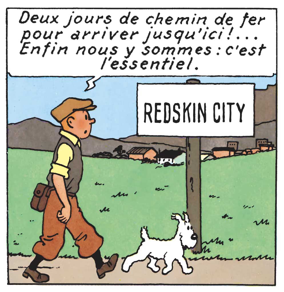 Faites place ! De l’autre côté de l’Atlantique, le rythme s’accélère dans Tintin en Amérique. Le reporter doit relier Chicago à la mystérieuse Redskincity. Deux jours de trajet sont ainsi nécessaires. En se basant sur une trentaine d’heures de train à une vitesse moyenne de 50 km/h, cela représente environ 1 500 km. A ce stade, Tintin en a vu défiler du rail. Trois lignes principales s’offrent à lui depuis Chicago : vers le Nord-Ouest et le Canada, vers Omaha, Cheyenne et Salt Lake City, ou vers le Sud-Ouest en direction de Kansas City, Salina puis Denver ou Pueblo. C’est cette troisième option que retient Hergé : un Ouest marqué par les plaines, le pétrole, les réserves indiennes et les premiers reliefs des Rocheuses. Le spectacle est à couper le souffle, mais pas le temps de lambiner, les dangers et les kilomètres se suivent comme des montagnes russes.