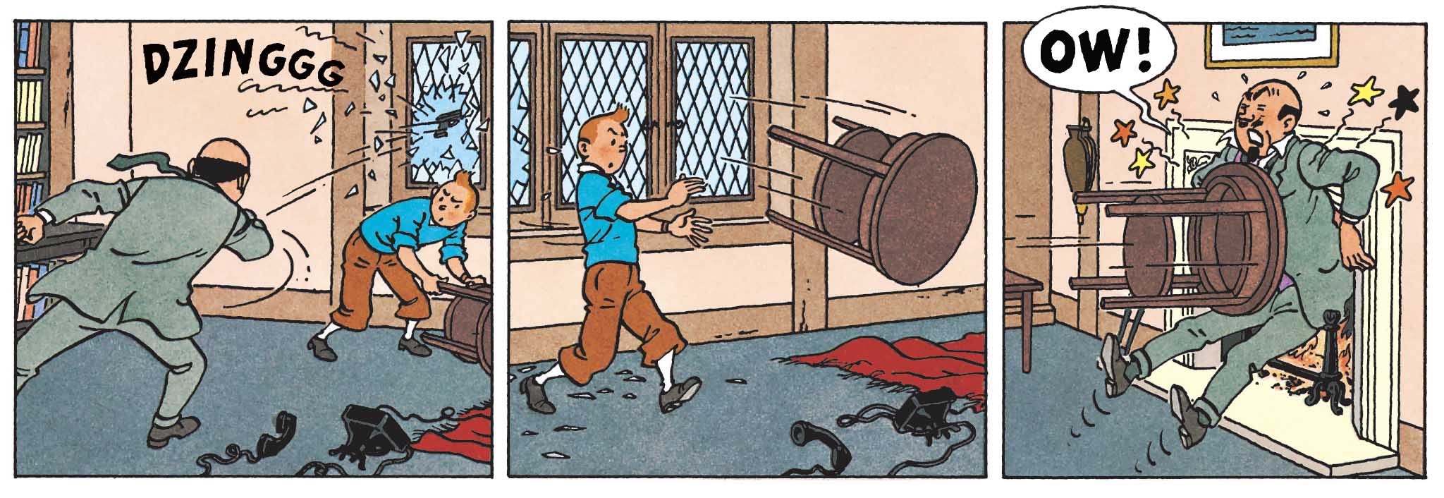 Ce langage du corps est d’autant plus important que Tintin est, au fond, un héros né du scoutisme. Tout cela se lit d’abord dans sa posture. Même l’action obéit à cette logique : courses, chutes, bagarres, rien n’est chaotique. Le mouvement est lisible, orienté, presque pédagogique. À force de le regarder vivre dans ses cases, une certitude s’impose, les mouvements de Tintin racontent l’histoire aussi sûrement que les dialogues.