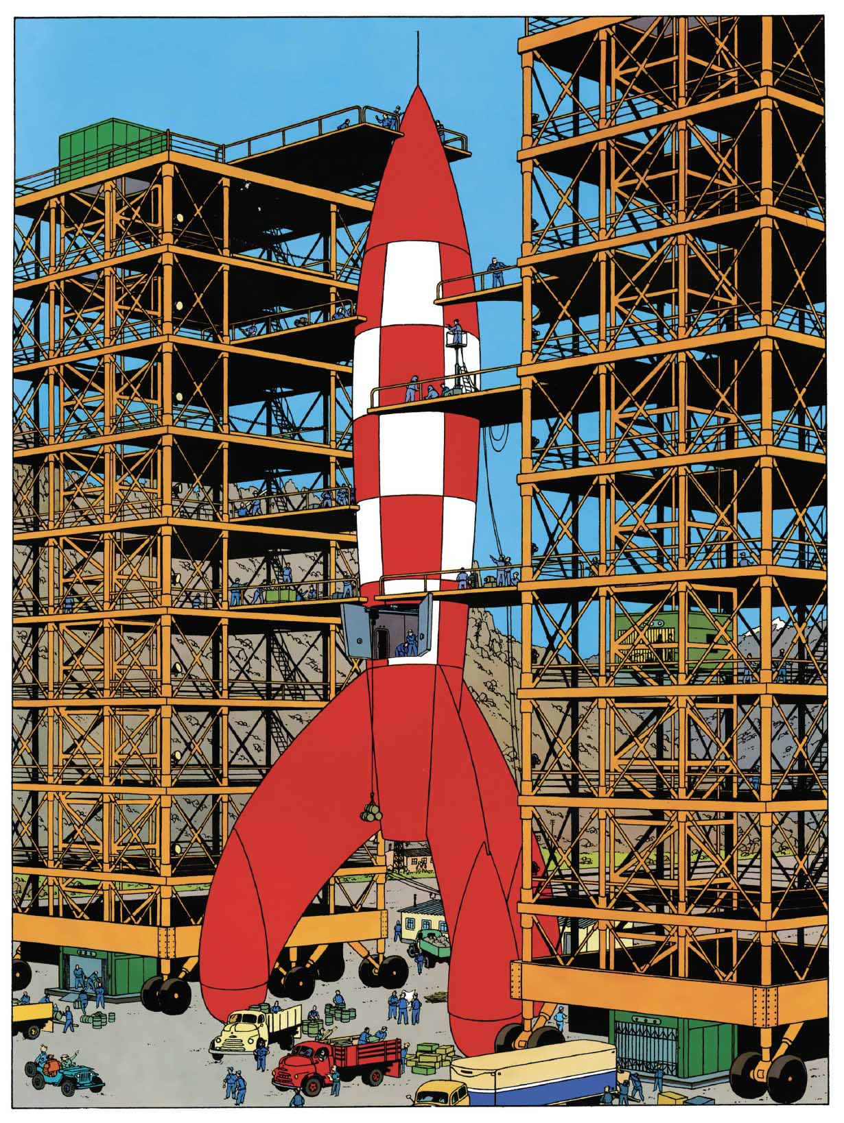 Comme tant d’autres, certaines cases ont façonné Tintin bien au-delà de leurs albums d’origine. Elles ont traversé les générations, fixé des postures, des silhouettes, des situations devenues indissociables de son univers. Comment raconter la conquête spatiale en fiction sans passer autrement que par la fusée rouge et blanche d’Objectif Lune et On a marché sur la Lune, devenue le symbole universel de l’aventure scientifique.