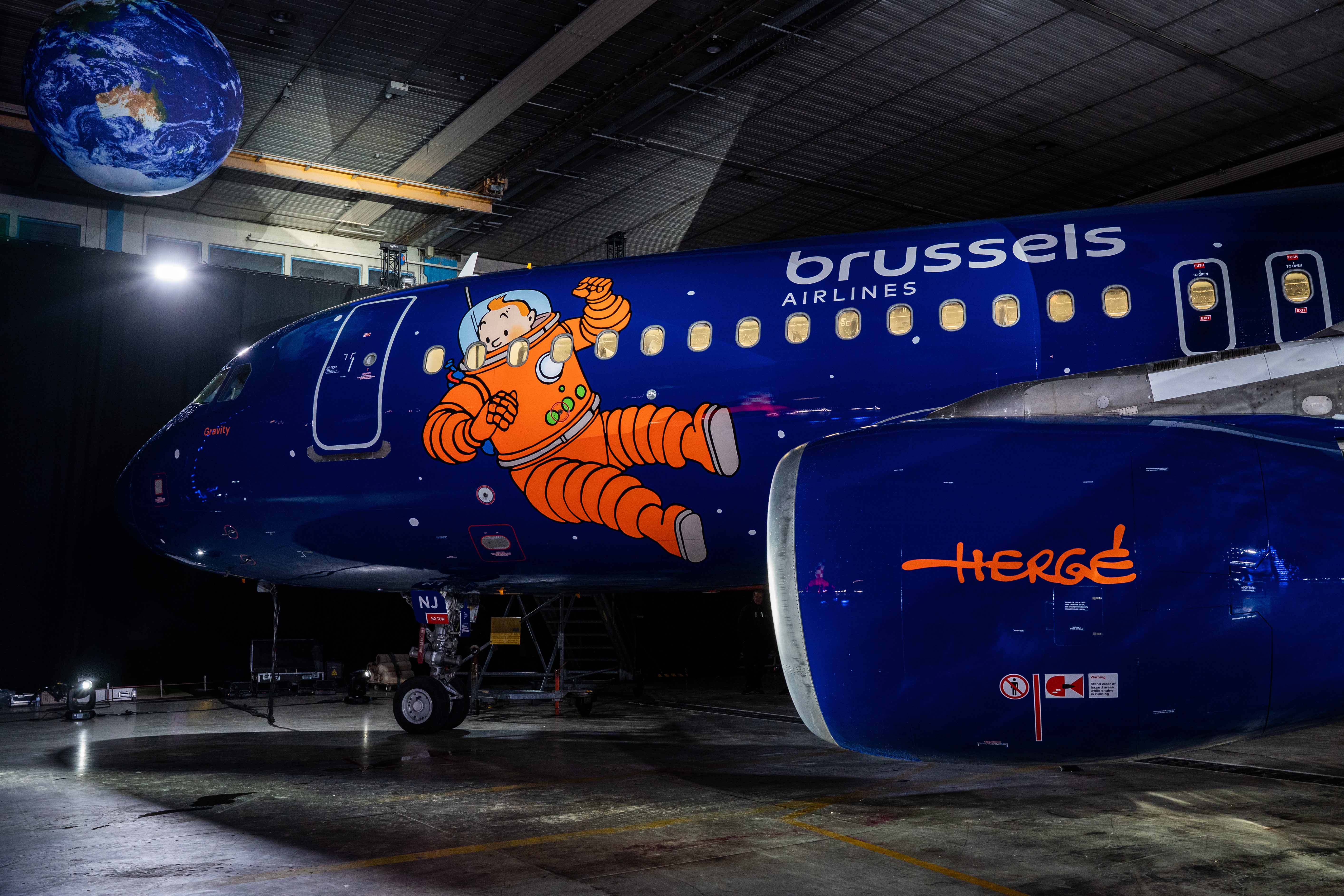 Cet appareil arbore une livrée inspirée des aventures lunaires de Tintin. Sa décoration spectaculaire montre Tintin, Milou et le capitaine Haddock flottant en apesanteur autour de la Lune. Inauguré le 12 février dernier, il rejoint la collection des Belgians Icons, une série d’avions célébrant la culture belge à travers le monde et les airs.