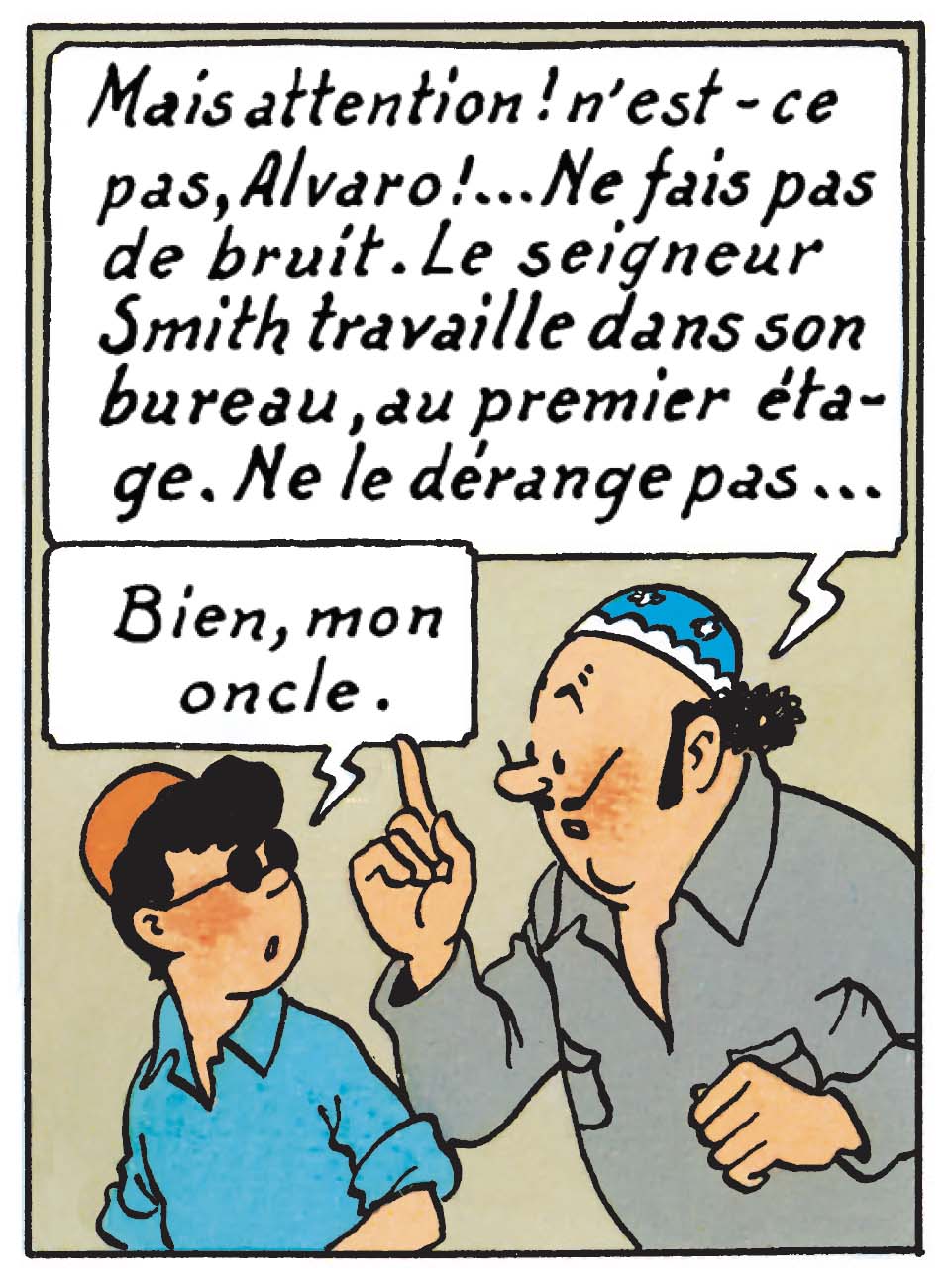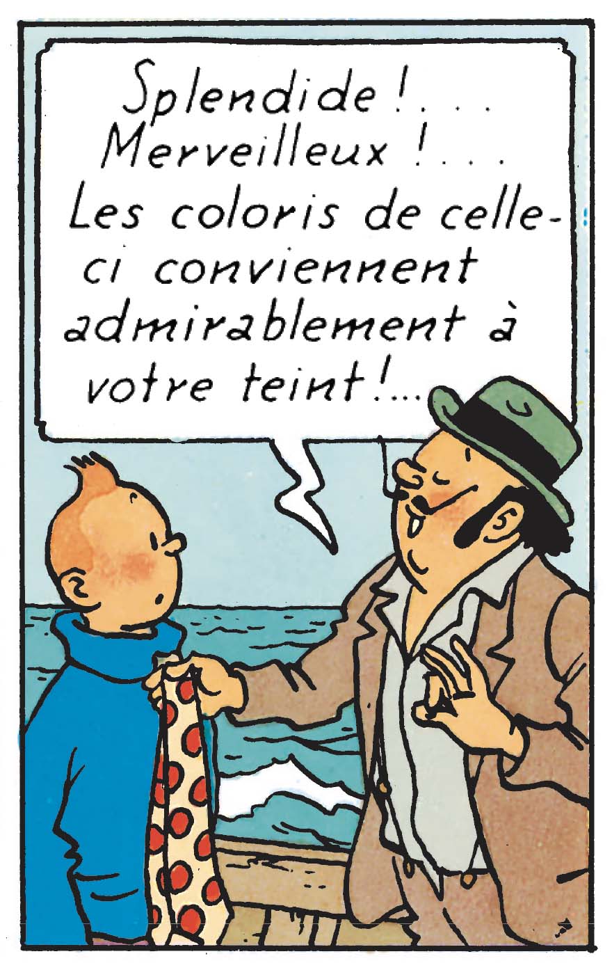 Mais dans certaines situations, ni le savoir ni l’action ne suffisent. Encore faut-il avoir la tchatche ! Dans Les Cigares du Pharaon, le senhor Oliveira da Figueira s’impose alors comme une figure à part. Moustache en croc soigneusement travaillée avec l’embonpoint prospère, le vendeur hors pair surgit au détour d’une escale comme un personnage déjà en représentation.