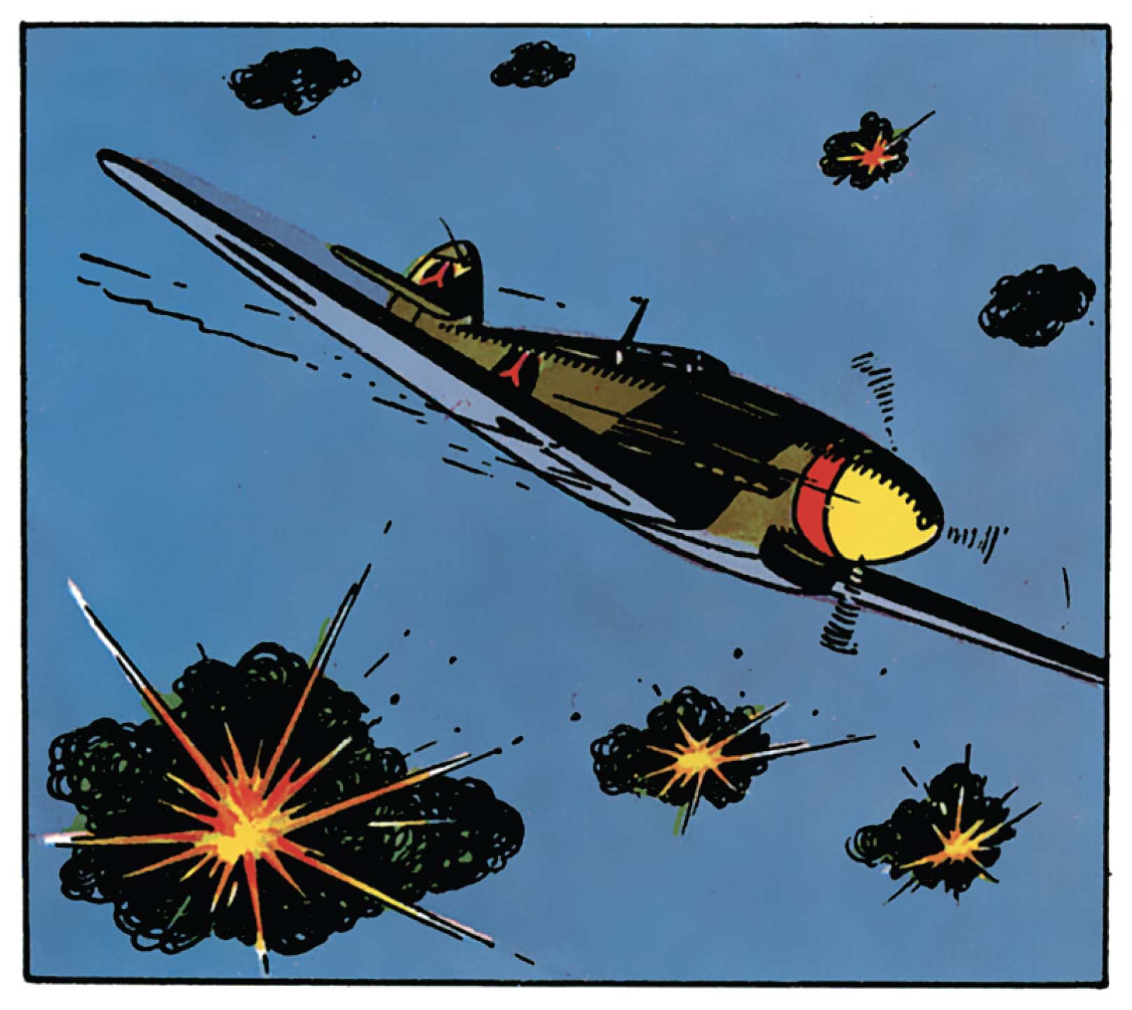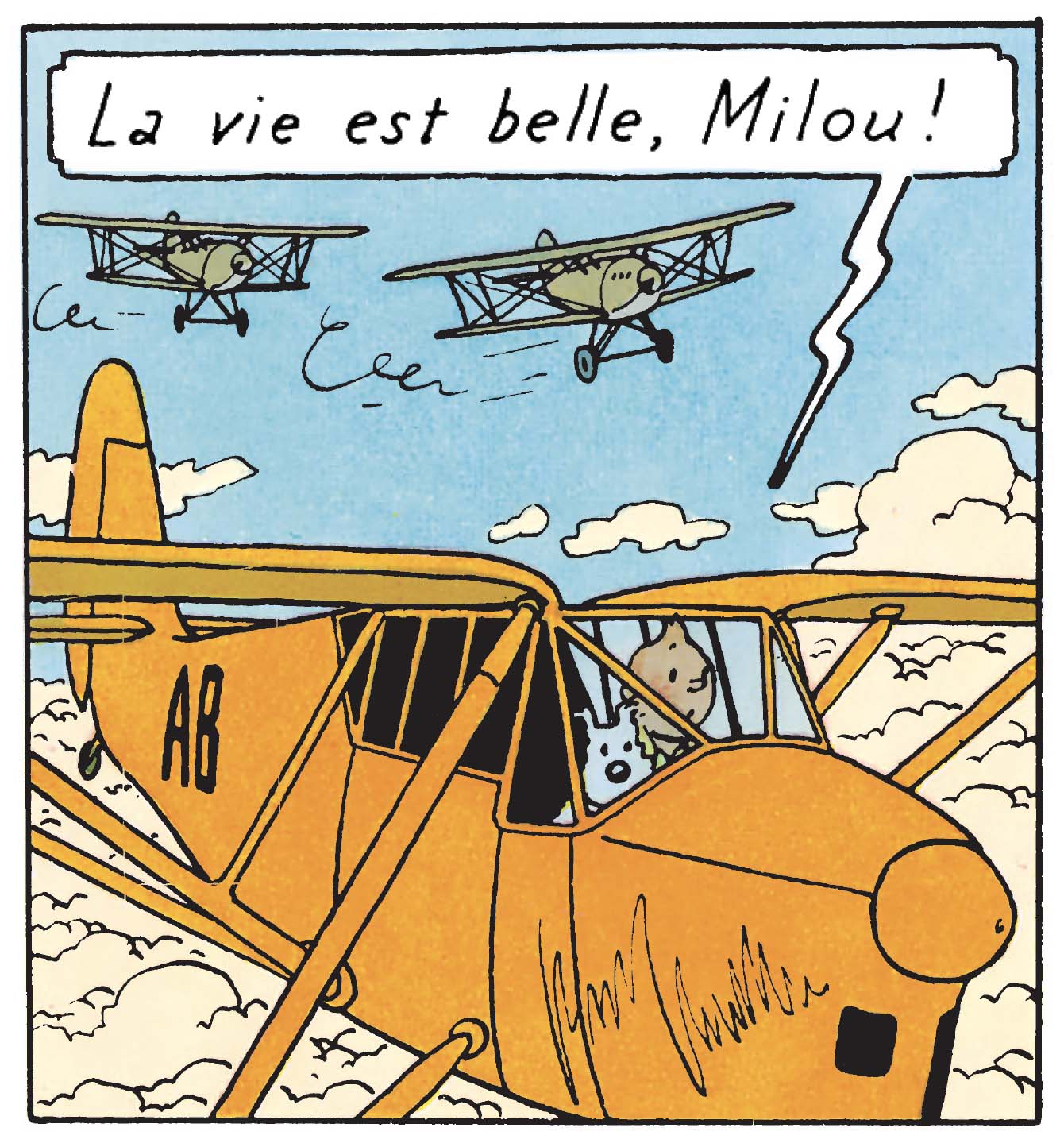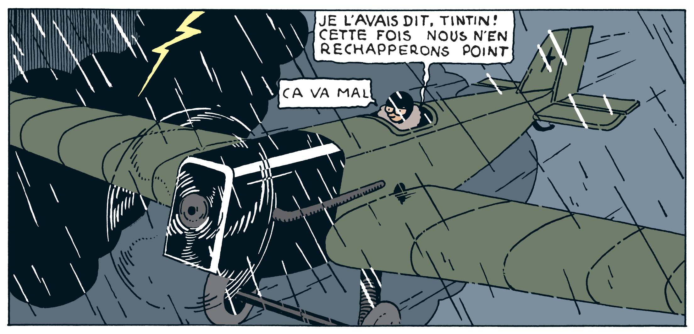 Au début de l’aviation, les machines volantes faisaient peur et pas seulement pour Tintin. Elles vibrent et tremblent, menaçant de se disloquer à chaque instant, comme pour rappeler au lecteur que voler reste encore, dans les années 1930, une forme d’audace presque inconsciente.