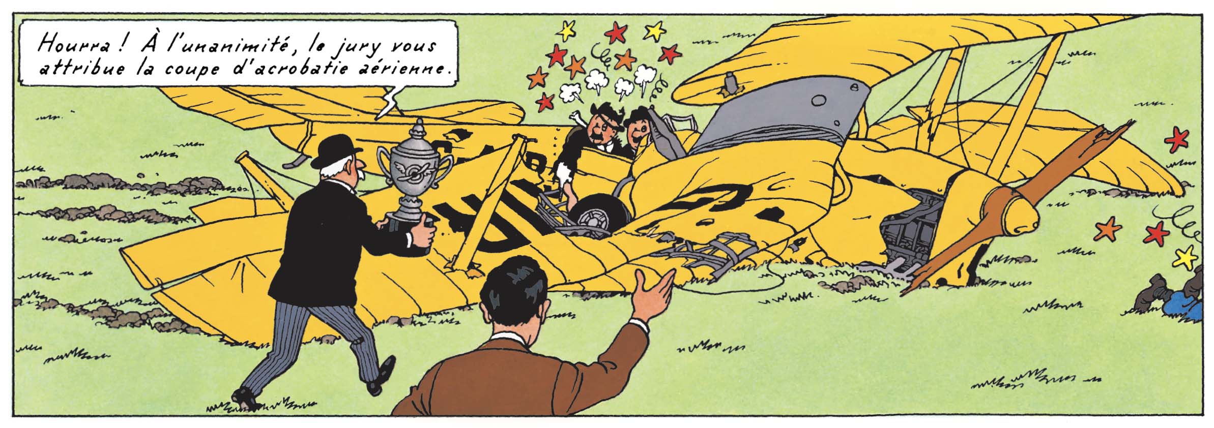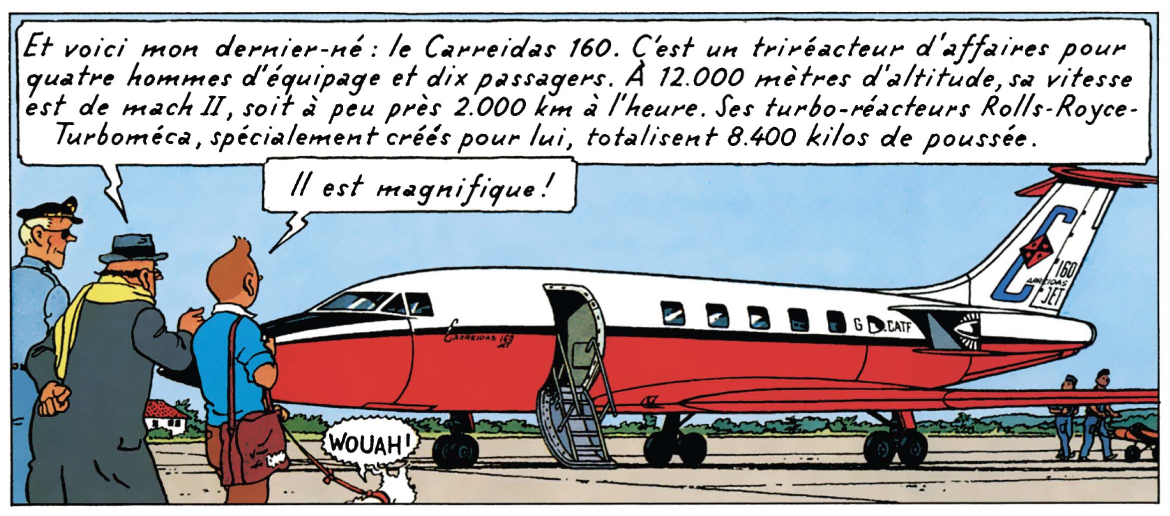 Du biplan hésitant au jet supersonique, de l’aventure bricolée au voyage organisé, Hergé dessine sans en avoir l’air une véritable histoire de l’aviation, intégrée au récit, fondue dans l’action, presque invisible à force d’être naturelle.