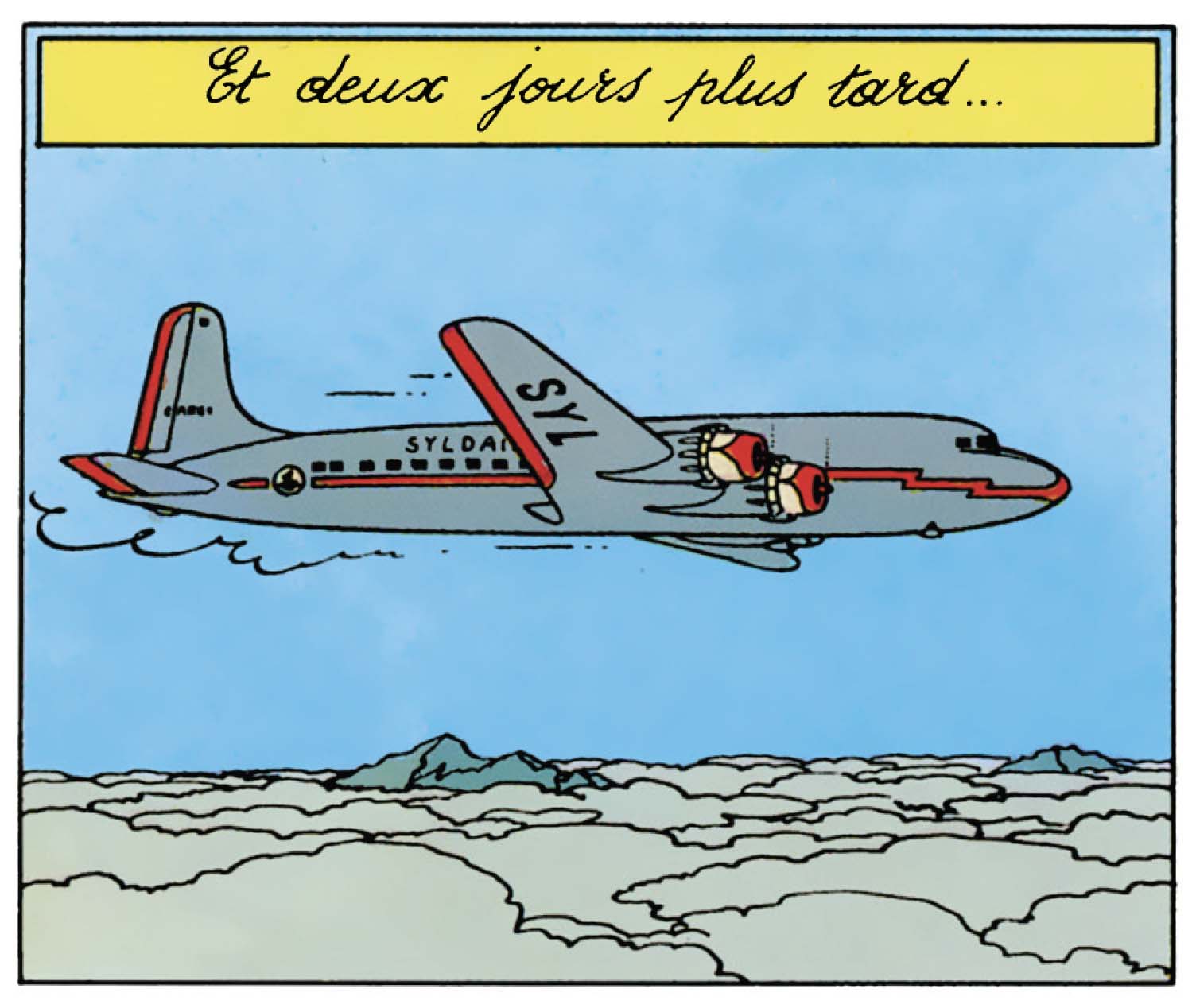 Dans Objectif Lune, le Douglas DC-6 de la compagnie Syldair transporte Tintin et Haddock vers une aventure scientifique, preuve que l’aviation s’inscrit désormais dans un réseau organisé, presque banal… du moins en apparence.