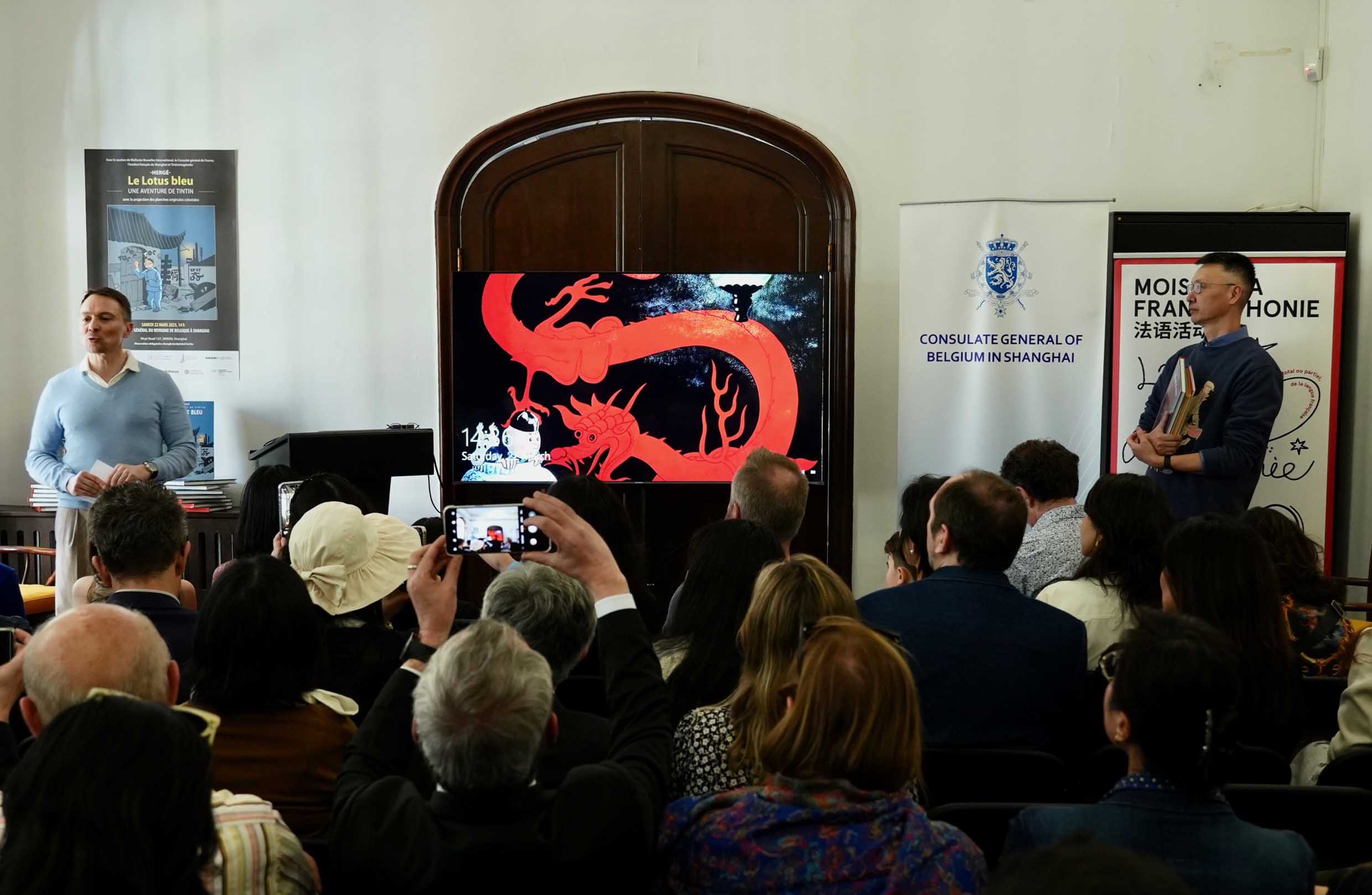 作为2025法语月活动之一的《蓝莲花》主题活动昨天在比利时驻上海总领事馆成功举办,各界嘉宾相聚在一起,重温比利时画家埃尔热早在上世纪三十年代创作的丁丁上海历险故事,以及他与中国艺术家张充仁跨越半个世纪的友谊。